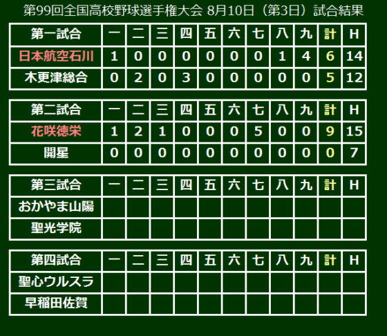 第99回全国高等学校野球選手権大会は10日、大会第3日が行われ、第2試合は花咲徳栄(埼玉)が開星(島根)に9-0と快勝し、前回大会に続く初戦突破を果たした。先発の綱脇が8回7安打無失点と好投すると、9回を清水が抑えて完封リレーを。打線も15安打で9点を奪った。