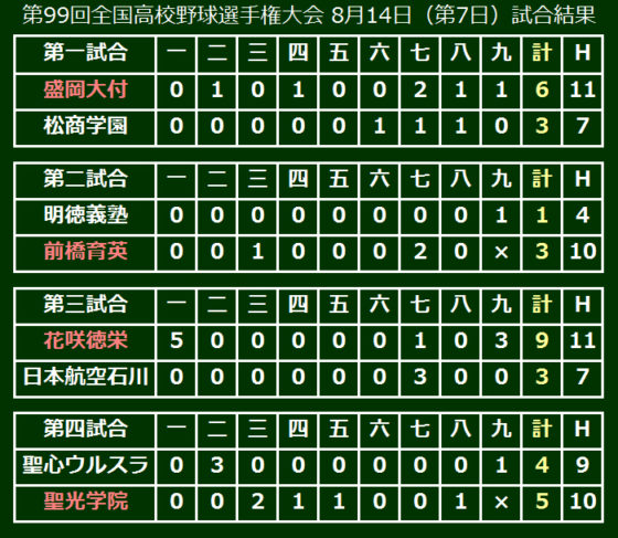 第99回全国高等学校野球選手権大会は14日、大会第8日が行われ、第4試合は戦後最長11年連続出場の聖光学院(福島)が聖心ウルスラ(宮崎)を5-4で破り、3回戦進出を決めた。2回に3点を先制されたものの、着実に得点を重ねて逆転勝利。2年連続の3回戦進出を決めた。