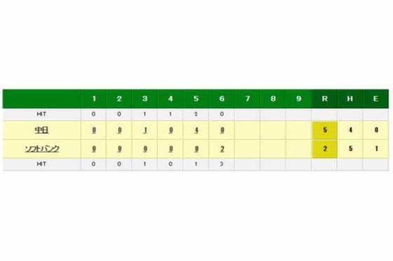 5点ビハインドで迎えた6回、1点を返し、なおも無死一塁の場面だった。4番・内川の打球は三塁へのボテボテのゴロに。三塁・亀澤が前進して捕球し、ランニングスローで一塁へ送球。内川が一塁へ到達するよりも、わずかに早く一塁手・ビシエドのグラブに送球は収まり、判定はアウトだった。