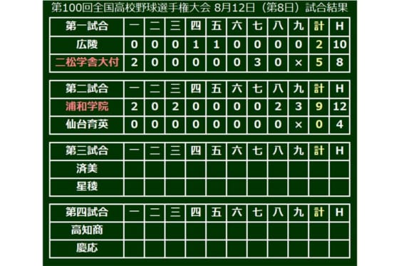 第100回全国高等学校野球選手権記念大会第8日、第2試合は浦和学院(南埼玉)が仙台育英(宮城)を9-0で下し、完封勝利を飾った。