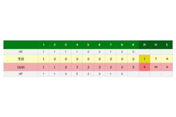 ■DeNA 9-1 中日(21日・横浜スタジアム)