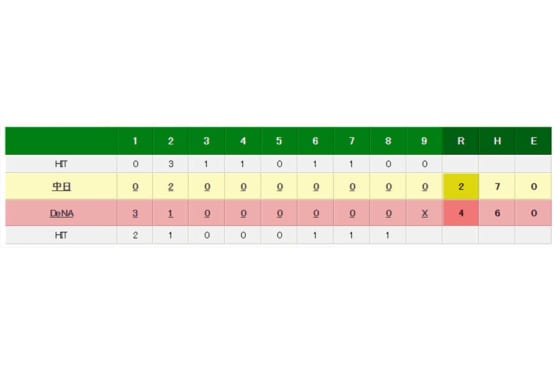 ■DeNA 4-2 中日(22日・横浜スタジアム)