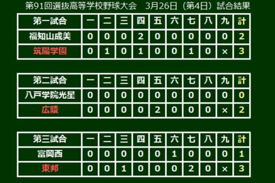 第91回選抜高校野球は26日、兵庫・西宮市の阪神甲子園球場で大会4日目第3試合が行われ、東邦(愛知)が21世紀枠・富岡西(徳島)に3-1で勝利した。