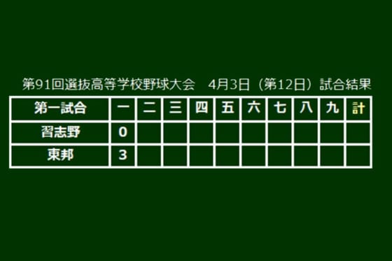 第91回選抜高校野球決勝が3日、決勝戦が行われ、通算5度目の優勝を目指す東邦(愛知)が習志野(千葉)から先取点を奪った。