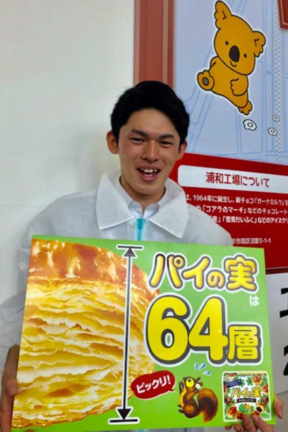 ルーキーたちがコアラのマーチ、ガーナミルクの生産過程を1時間ほどの工程で見学