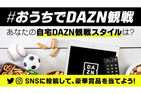 「#おうちでDAZN観戦」をつけて投稿すると、豪華賞品がもらえるキャンペーンも実施