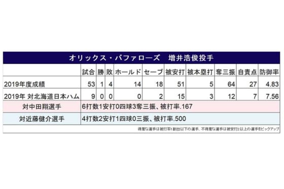 今回は2018年、2019年に移籍した増井浩俊投手(オリックス)、金子弌大投手(日本ハム)、浅村栄斗内野手(楽天)、ブランドン・レアード内野手(ロッテ)をピックアップし、2019年シーズンにおける古巣との対戦成績で相性の良かった選手、悪かった選手を紹介したい。