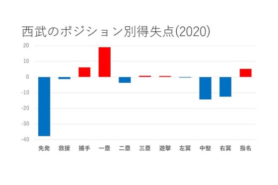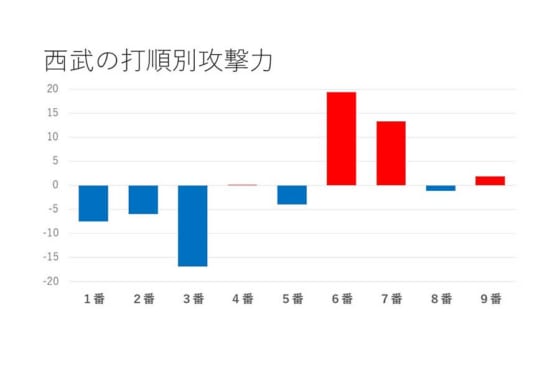 また多くのポジションで大きなアドバンテージを獲得していた攻撃力も、今季は山川穂高やエルネスト・メヒアが入るファーストだけが突出している。かろうじて森友哉が入るキャッチャー、栗山巧が入る指名打者でプラスの貢献が見える程度だ。