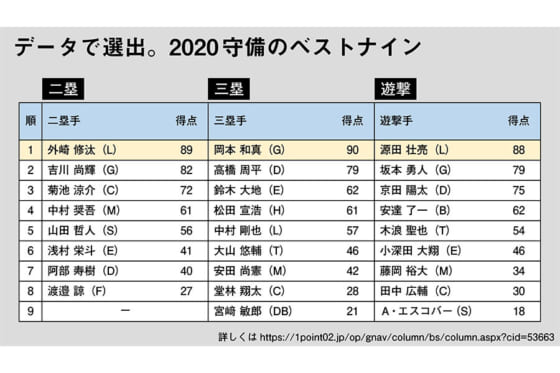 GG賞逃した巨人・岡本が満点 アナリストが選ぶ名手は?【二塁&三塁&遊撃編】
