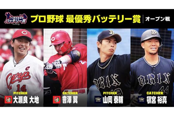 大瀬良はオープン戦で15回を投げて5安打無失点。リーグ1位の19奪三振をマークした。會澤は大瀬良の登板全試合でマスクをかぶった。セ・リーグでは他に巨人の菅野智之-大城卓三、DeNA京山将弥-嶺井博希が候補にあがっていた。