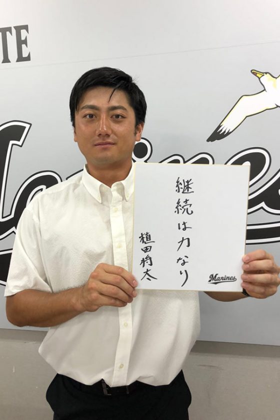 「とても嬉しい気持ちと、周りの方々に支えられてここまでこれたという感謝の気持ちでいっぱいです。ここからがプロ野球選手としての本当のスタートなので、長く野球ができるような選手になりたいと思っています。ずっと1軍で活躍できるような選手になれるように頑張りたいです。技術面のことはコーチの方々に教えていただいて少しは上達できたのかなと思いますし、1年目に比べて今年のほうが精神面の部分ですごく落ち着いてプレーすることができていると自分で感じています。そういった面でも成長できているのかなと思います。やっとマリーンズの一員になれたという気持ちもありますし、マリーンズが勝つために皆さんの期待に応えられるようなプレーが出来るようにこれからも頑張っていきたいです。応援宜しくお願いします」