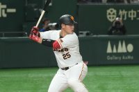 巨人・岡本和真が驚きの“変態打ち” 左翼スタンド中段まで運ぶ6号は「ほぼ片手やん」