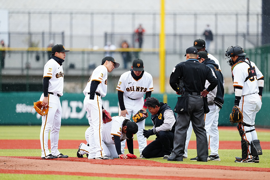 巨人の又木鉄平投手が8日、2軍新球場ジャイアンツタウンスタジアムで行われた阪神とのファーム新球場「開業記念試合」に先発登板。2回に打球が顔面付近に直撃し、担架で運ばれ緊急降板する場面があった。