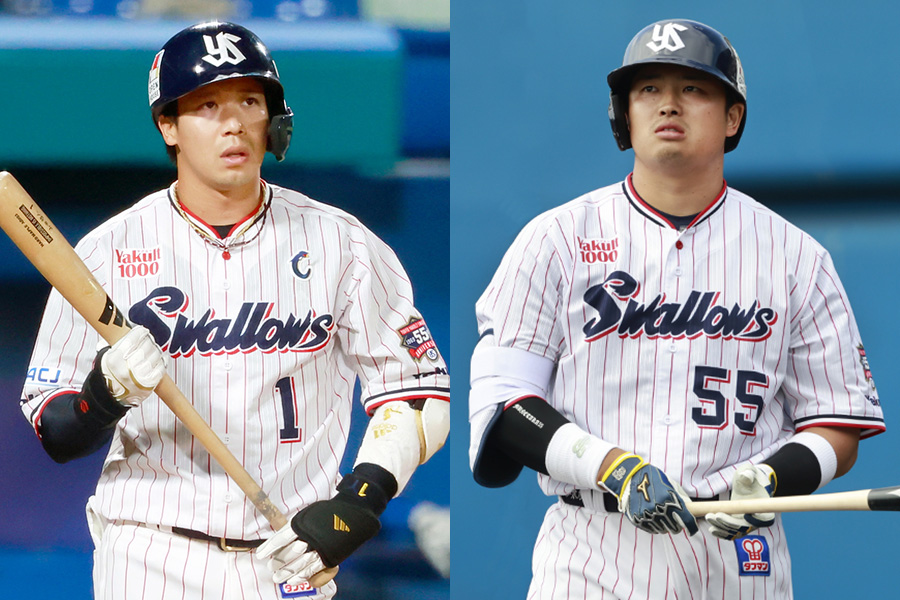 ヤクルト・山田哲人(左)と村上宗隆【写真:矢口亨】