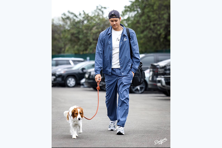 球団公式X(旧ツイッター)は、「翔平とデコイが到着しました」と駐車場での写真を公開。リードを持ってデコピンとともにドジャースタジアムに入った。その表情は真剣そのもので、デコピンもどこか気合いの入った表情に見える。