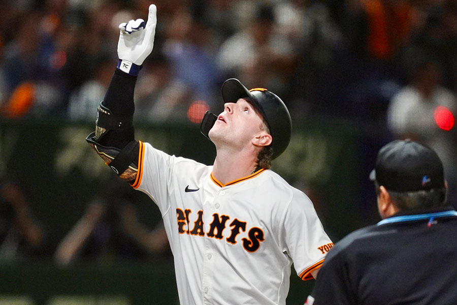 試合の流れを変えたのが第4打席だ。0-5とリードされて迎えた8回無死一塁。ヤクルト3番手の左腕・山本大貴投手に対しカウント3-2から、外角高めのスライダーをとらえると、打球はあっという間に右翼席中段へ飛び込んだ。この来日初本塁打が、反撃ののろしとなる。2点ビハインドの9回1死一、三塁という一発逆転サヨナラの場面では、右手に死球を受けて怒りをあらわにしたが、日本でのデビュー戦として文句のつけようのない内容だった。