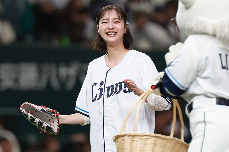 女優の新川優愛さんが29日、ベルーナドームで行われた西武-日本ハム戦の試合前にセレモニアルピッチに登場した。大の西武ファンである新川さんは、ノーバウンド投球を披露すると、うれしさから思わず飛び跳ねて笑顔。「ゆあちゃん今年も可愛い」「可愛すぎてやばかった」とファンを魅了した。
