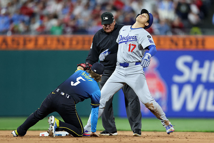 3点を追う8回2死一塁で、大谷は右前打。一、三塁とチャンスを拡大した。ここでフィリーズは3番手のルイーズが登板。ムーキー・ベッツ内野手の打席で大谷は二塁にスタートを切ったが、失敗。チャンスは潰えてしまった。