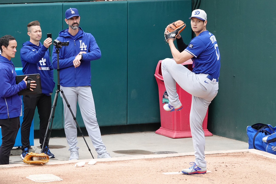 ドジャースの大谷翔平投手が5日(日本時間6日)、フィリーズ戦前にブルペンで26球の投球練習を行った。ツーシームやスプリットを投じ、セットポジションからの投球も披露。デーブ・ロバーツ監督が今後のプランを明かした。