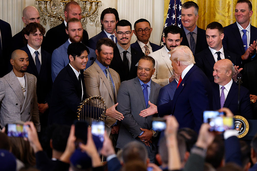 ドジャースが7日(日本時間8日)、昨年のワールドシリーズ制覇を報告するためにホワイトハウスのドナルド・トランプ大統領を表敬訪問。大谷翔平投手は1対1でのやりとりでも、トランプ大統領を「なんという男なんだ」と感服させるほど、スーパースターとして見事なオーラを放っていた。