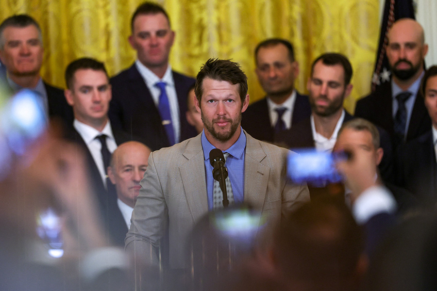 通算212勝を誇る左腕はスピーチで「ロサンゼルス・ドジャース、私の後ろにいるスタッフと選手たちを代表してここに立っていることは、私にとってとても光栄なことです」「2024年のロサンゼルス・ドジャースのシーズンは、歴史に残るものとなるでしょう」などと挨拶した。