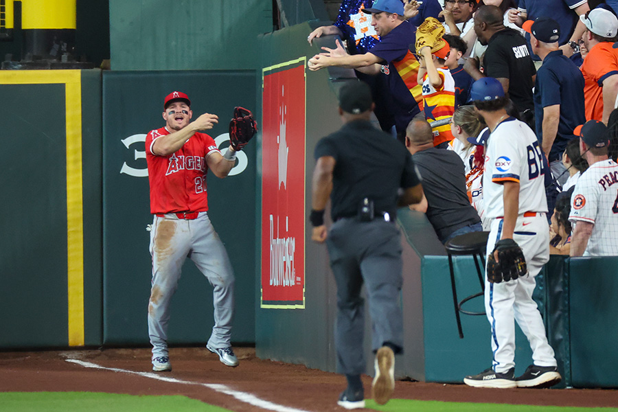 エンゼルスのマイク・トラウト外野手は12日(日本時間13日)、敵地でのアストロズ戦に「3番・右翼」で出場。右翼ファウルゾーンでフライを捕球しようとした際、グラブに収まったボールをファンがもぎ取りファウル判定に。トラウトは捕球を主張し、両手を挙げて不満をあらわにした。