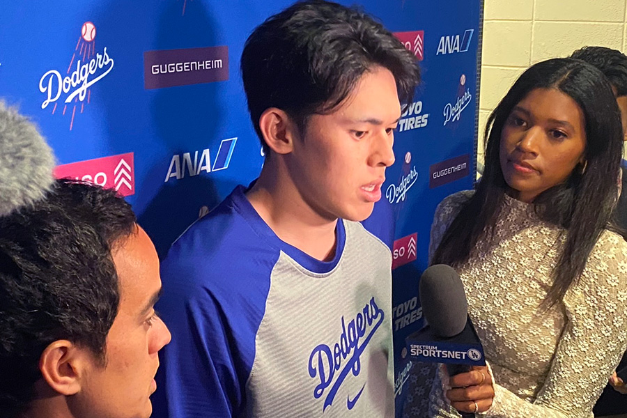 救援陣が崩れ、8回からはミゲル・ロハス内野手が野手登板。山本由伸投手や佐々木、クレイトン・カーショー投手のモノマネを披露した。モノマネの完成度を聞かれた佐々木は「100点だと思います」と白い歯を見せた。