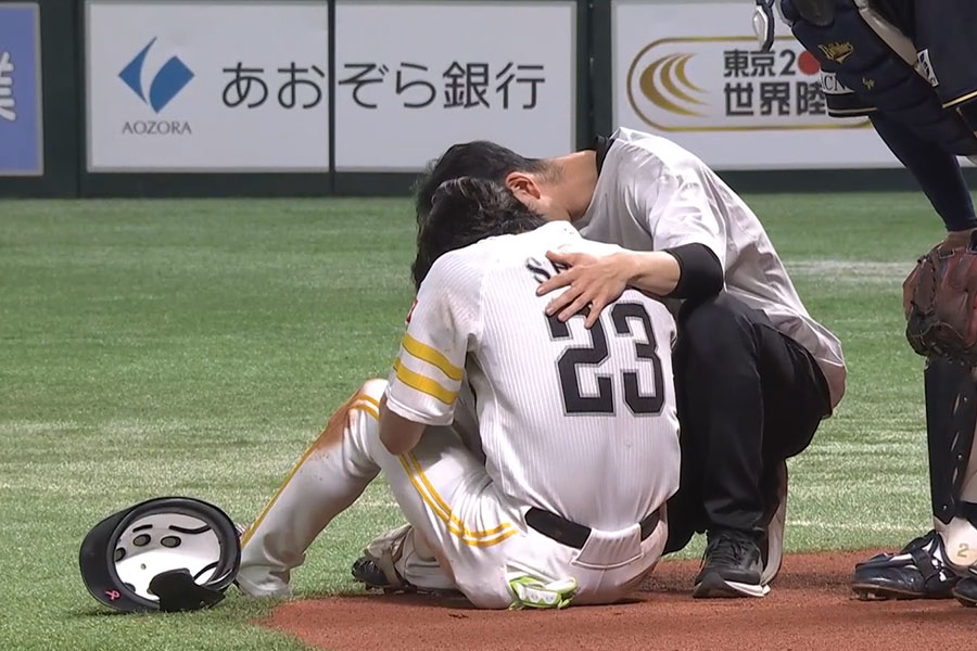 鷹に緊急事態 周東が右膝付近への死球に悶絶…歩けず交代、相次ぐ負傷者に場内騒然 福岡ソフトバンクホークス 2025.04.23 【実際の様子】響き渡る鈍い音…周東は死球に苦悶、場内に響き渡る悲鳴 【実際の様子】響き渡る鈍い音…周東は死球に苦悶、場内に響き渡る悲鳴 (Full-Count編集部) この画像の記事を読む 1 2 RECOMMEND オススメ記事 KEYWORD 注目のタグ #ファイターズガール #新庄剛志 #戦力外通告 #周東佑京 #牧原大成 #近藤健介 #中嶋聡 #稲葉篤紀 #宮城大弥 #伊藤大海 #杉本裕太郎 #新人王 #ハニーズ #BsGirls #マスコット CATEGORY 関連カテゴリ一 東北楽天ゴールデンイーグルス 埼玉西武ライオンズ 千葉ロッテマリーンズ オリックス・バファローズ 福岡ソフトバンクホークス 北海道日本ハムファイターズ 浅村栄斗 鈴木大地 源田壮亮 藤原恭大 澤村拓一 平野佳寿 吉田輝星 森友哉 山川穂高 柳田悠岐 今宮健太 有原航平 上沢直之 清宮幸太郎 西川遥輝 新庄剛志 RANKING 1 岡本和真、英語で会見「全力を尽くします」 ブ軍入り決め手は娘の“一言”「かわいい」 2 ヌートバー、年俸8.4億円に決定…球団発表 3.8億円増、昨年は年俸調停で“勝利” 3 今井達也、英語で入団会見「What’s up?」 場内爆笑…アストロズ入団は「一番評価していただいた」 4 突如報道されたカーショーの動向 浮上した“可能性”に悲鳴の声も「なんてこった」 5 西武、高橋光成の残留発表 メジャー挑戦を断念、3球団からオファーも…下した“決断”