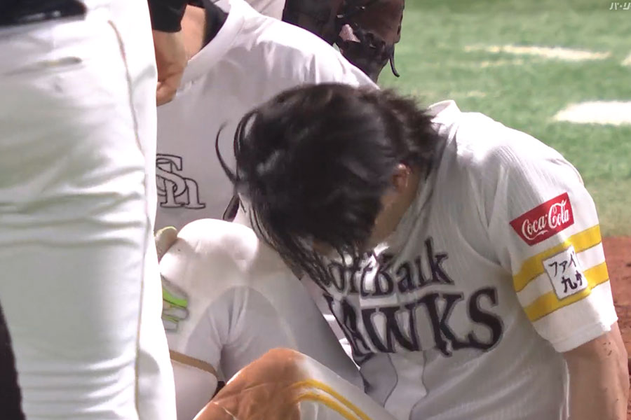 ソフトバンクの周東佑京内野手が23日、本拠地で行われたオリックス戦で、右膝付近に死球を受けて交代となった。直球が直撃すると、場内には鈍い音が響いた。苦悶の表情で倒れこむ衝撃のシーンに、ファンからは「当たった時の音がやばいな」「マジでやめて……」と心配の声が殺到した。