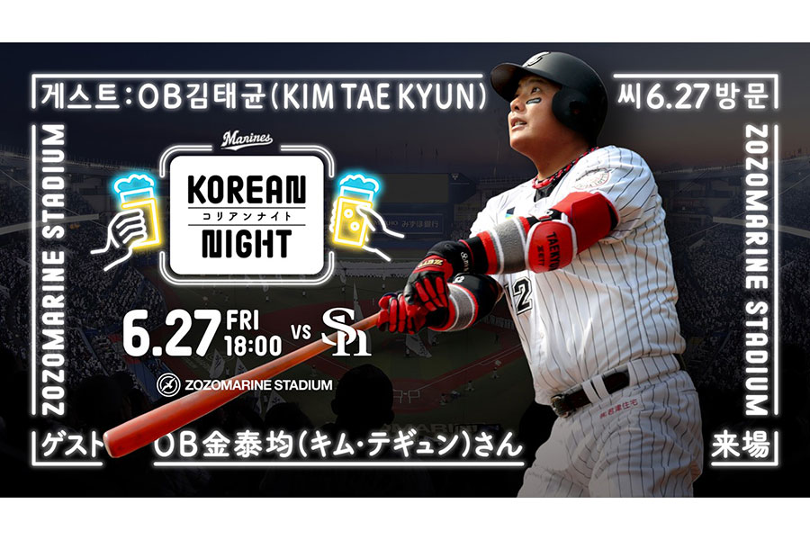 当日は始球式にも登場する。金泰均氏は「こんにちは、キム・テギュンです。私にプロ野球人生で最初で最後の優勝をもたらしてくれたチーム、千葉ロッテマリーンズを再び訪れることができて感慨深いです。あの頃の歓声と情熱、そしてファンの皆さんの応援は今でも心の中に大切に残っています。千葉で過ごした時間は私の野球人生に欠かせない大きな贈り物であり、再びそのご縁を繋げることができることを心から嬉しく思います。マリーンズファンの皆さん、近いうちにご挨拶できることを楽しみにしています!」とコメントした。