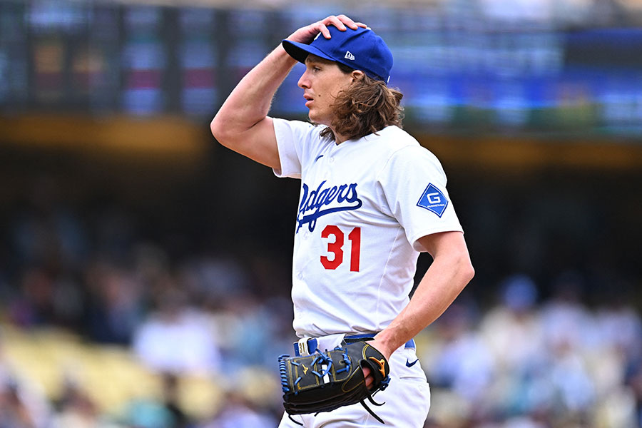 ドジャースのタイラー・グラスノー投手が27日(日本時間28日)、本拠地でのパイレーツ戦に先発登板するも2回の投球練習中に異変を訴えて緊急降板した。アクシデントが生じたと見られる。2番手にはベン・カスペリアス投手がマウンドに上がった。