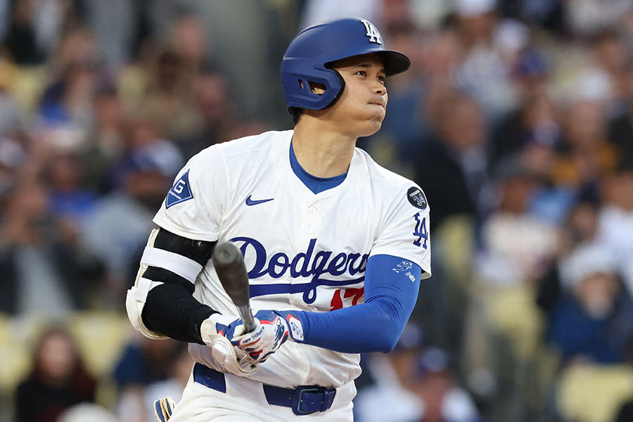 ドジャースの大谷翔平投手が28日(日本時間29日)、本拠地で行われたマーリンズ戦に「1番・指名打者」で先発出場。第1打席で3試合連続のヒットを放った。