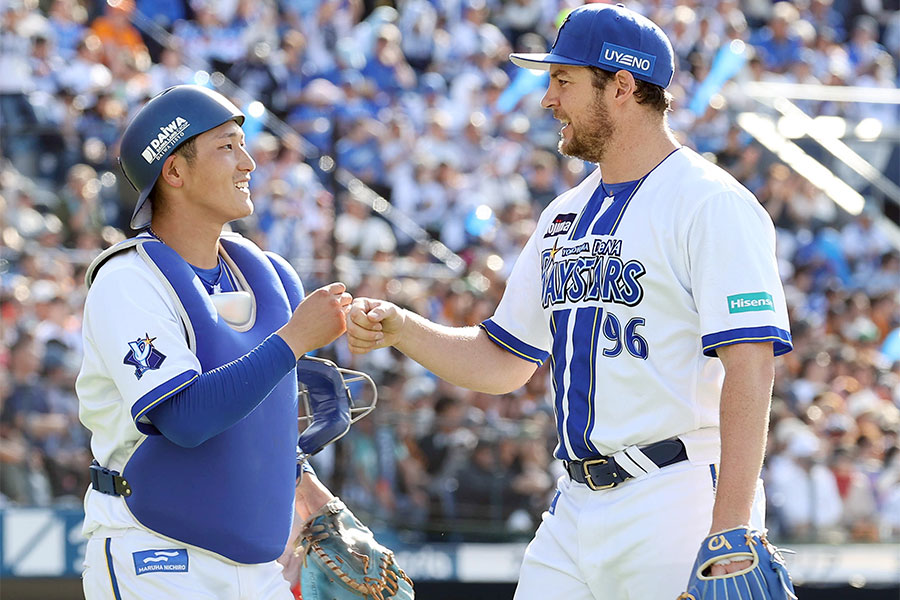 バウアーが巨人戦初勝利&NPB初完封 122球7Kの熱投…“相棒”松尾が決勝犠飛&盗塁3度阻止