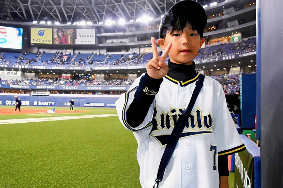 この日の声出しは、背番号「7」のユニホーム姿の小学2年、「あおい君」。西川と紅林弘太郎内野手を両脇にしたあおい君は、「心は熱く、頭は冷静に。今日も勝ちましょう!」と大きな声で選手らを鼓舞した。この言葉に反応したのが西川だった。「エエこというなあ」。次に口を突いたのが「誰に仕込まれた? ヘッド(水本勝己ヘッドコーチ)か?」