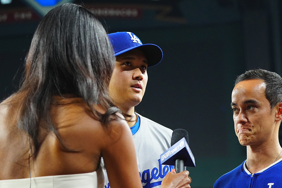 11-11の9回1死一、二塁で迎えた第6打席だった。代わったばかりのトンプソンのスプリットを完璧に救い上げると、打った瞬間にバットを放り投げ両手を上げて“確信”。打球速度113マイル(約181.86キロ)、飛距離426フィート(約129.84メートル)、角度26度のアーチに敵地は騒然となった。「(トンプソンは)動き的にも珍しいというかボールの動きも独特で素晴らしい投手なので、最終的にはああいう形になりましたけど、何とかコンタクトすることを心がけていきました」と大谷。シーズン49発ペースとなった。
