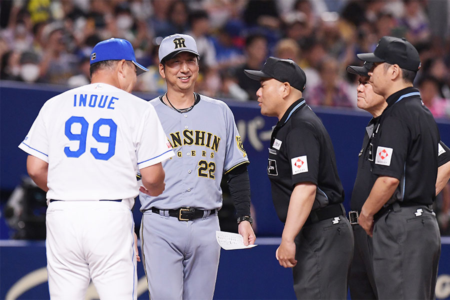阪神戦、“疑惑”の判定は「すれ違い」 試合前に2分間の異例対応…井上監督「ズレを確認」 中日ドラゴンズ 2025.05.25 【実際の様子】井上監督に対して…阪神・藤川球児監督の“意味深”な表情 【実際の様子】井上監督に対して…阪神・藤川球児監督の“意味深”な表情【写真:産経新聞社】 (木村竜也 / Tatsuya Kimura) この画像の記事を読む