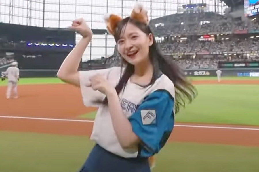 試合前、乃木坂46の金川紗耶さん、小川彩さん、長嶋凛桜さんがファーストピッチに登場。3人が同時にマウンドに上がる珍しい光景にファンは騒然となった。大きく振りかぶって投げるも、捕手に届かず“大暴投”に。しかし、白シャツにスカート姿で大役を担った3人に大きな拍手が送られた。