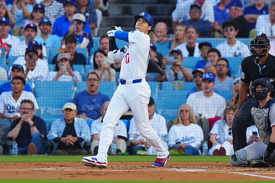 1点を追う初回無死。大谷が左腕マックス・フリードの初球のシンカーを捉えると、高く舞い上がった打球はバックスクリーン左に消えた。今季6本目、通算18本目の先頭打者弾は、打球速度105.5マイル(約169.7キロ)、飛距離417フィート(約127メートル)、角度31度だった。これで5月は14本目と絶好調で、エンゼルス時代の2023年6月に記録した月間自己最多本塁打にあと1本となった。
