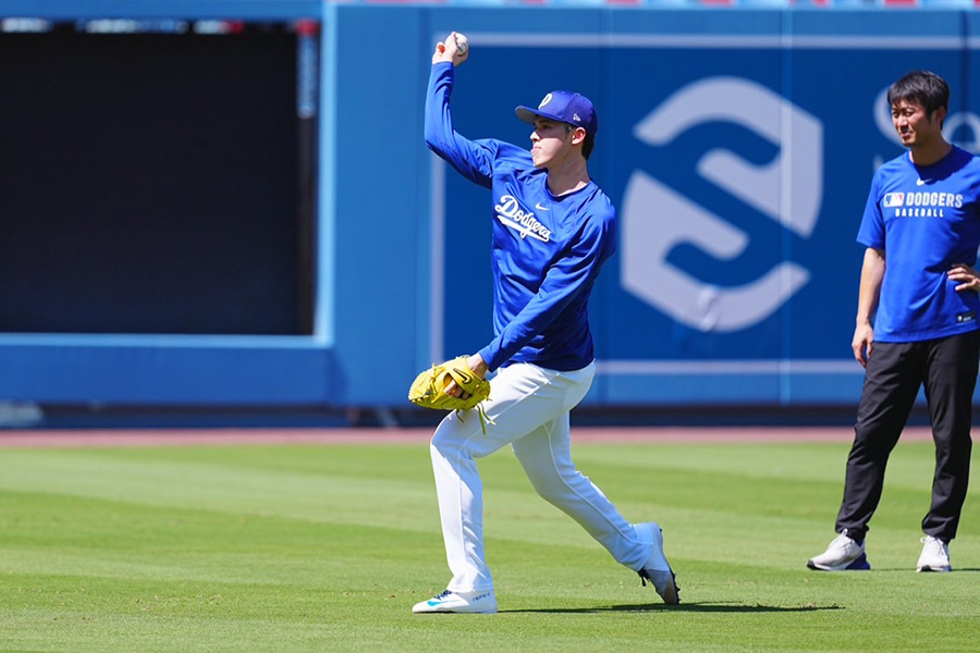ドジャースの佐々木朗希投手は30日(日本時間31日)、本拠地ヤンキース戦前にキャッチボールを行った。右肩インピンジメント症候群で負傷者リスト(IL)してから、報道陣の前で行うのは初となる。
