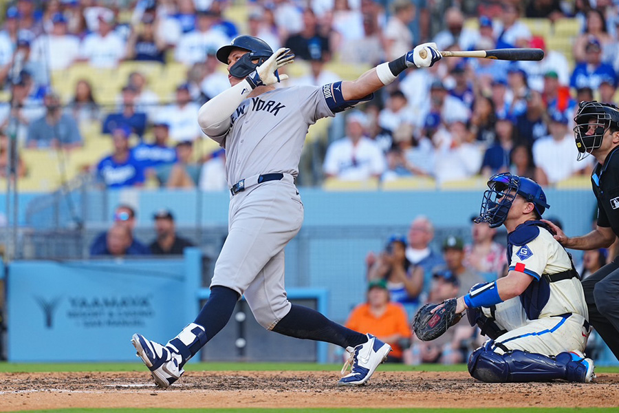 ヤンキースのアーロン・ジャッジ外野手が31日(日本時間6月1日)、敵地で行われたドジャース戦に「2番・DH」で先発出場。ライバル大谷翔平投手の前で1試合2発目となる21号ソロを8回に放ち、大量点差の中で意地を見せた。