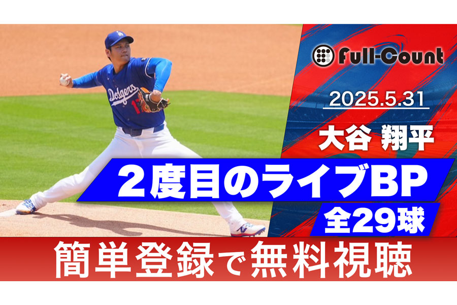 【全29球・ライブBP映像】大谷翔平、バットへし折る剛球披露! ドジャースタジアムで初マウンド 大谷翔平 2025.06.01 2度目のライブBPでマイナー選手相手に29球 ドジャースの大谷翔平投手は31日(日本時間6月1日)、本拠地でのヤンキース戦前に実戦形式の投球練習「ライブBP」に登板。ダルトン・ラッシング捕手とのバッテリーで、マイナー選手を相手に29球を投げ、バットをへし折る剛球を披露しました。ライブBPでの全球を動画でご覧ください。 (Full-Count編集部)