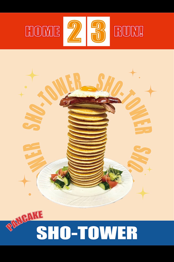 さらに本塁打の数だけパンケーキが積み上がっていくおなじみの「#SHOTOWER 」は、キュウリやトマトのサラダも追加。上にはベーコンと目玉焼きが乗ったおいしそうな仕上がりとなっている。