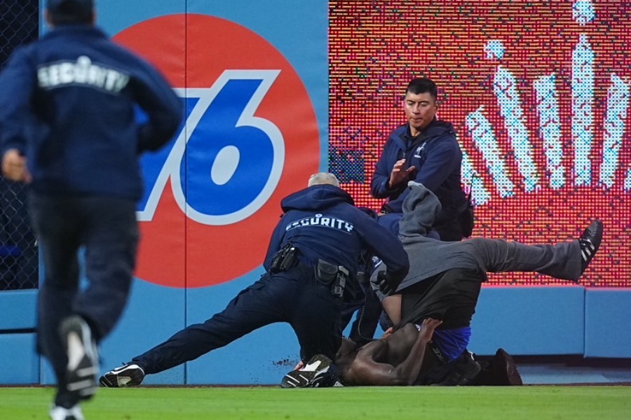 6点差に広がった8回1死だった。左翼ポール付近からファンがグラウンドで乱入。複数の警備員が追いかけた。シャツを脱いだファンは中堅付近まで走り、その後は切り替えして左翼方向へ猛ダッシュ。しかし、フェンス沿いで警備員に突き飛ばされ、確保された。