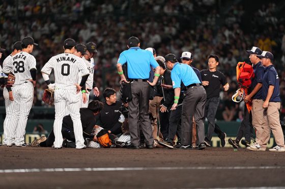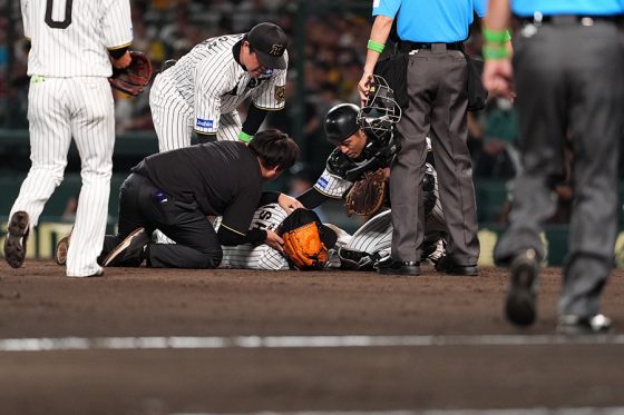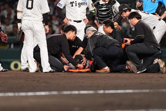 阪神・石井大智、頭部にライナー直撃 倒れ込み動けず担架で運ばれ交代…甲子園騒然 阪神タイガース 2025.06.06 【実際の様子】頭部直撃で倒れ込む阪神・石井 タンカに乗って緊急退場…甲子園騒然 【実際の様子】頭部直撃で倒れ込む阪神・石井 タンカに乗って緊急退場…甲子園騒然 (Full-Count編集部) この画像の記事を読む