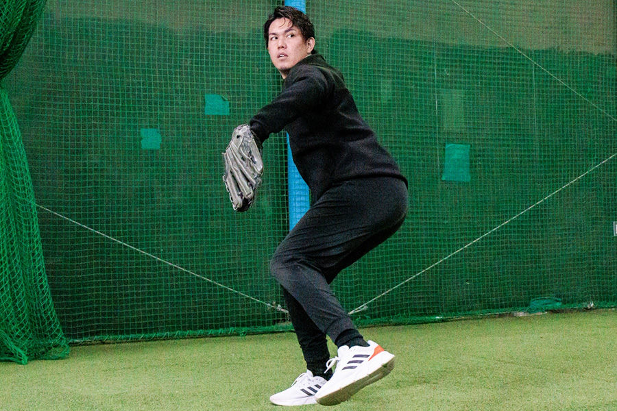 地面反力とは地面を強く踏み込んだ時に受ける反発力のことで、球速アップには欠かせない要素だ。右投手なら軸足の右足に体重を乗せ地面を強く蹴る力を利用し、踏み出す左足へ素早く体重を移していく。ここでの体重移動が不十分だと出力は弱くなり、球速も上がらない。