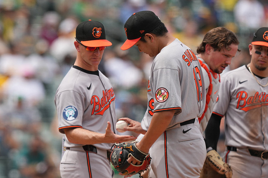 オリオールズ・菅野智之投手が8日(日本時間9日)、敵地で行われたアスレチックス戦に先発。5回1死一、二塁としたところで交代を告げられた。4回1/3を投げ、ともに自己ワーストに並ぶ8安打、4失点で6勝目はならなかった。