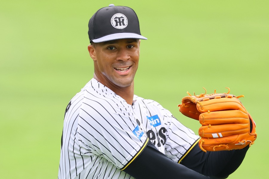 デュプランティエは5日にエスコンフィールドで行われた日本ハム戦に先発。6回2/3を投げて2安打無失点、日本移籍後で最多の12奪三振と衝撃のピッチングを披露した。この時はいつも通りの眼鏡をかけ、口髭スタイルだったが、敵地遠征を終えて甲子園に戻ると、驚きの姿を見せた。