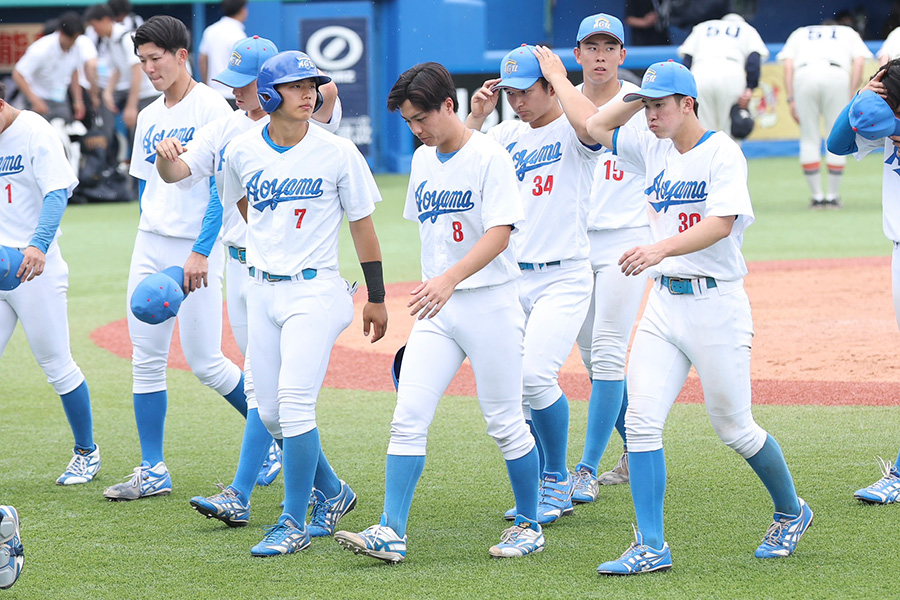 全日本大学選手権の準決勝が14日、明治神宮野球場で行われ、東都大学代表の青学大が仙台六大学代表の東北福祉大に5-8で敗れた。史上初の大会3連覇がかかっていたが、佐藤悠太外野手(3年)に特大弾を含む4安打を浴びるなど、自慢の投手陣が強力打線にのまれた。