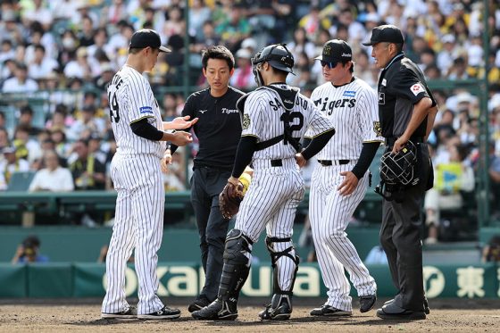 阪神・大竹耕太郎が緊急降板 古巣相手に5回まで無失点投球も…甲子園は騒然 阪神タイガース 2025.06.21 【実際の様子】甲子園騒然…指を気にしながらトレーナーらに見せる阪神・大竹 【実際の様子】甲子園騒然…指を気にしながらトレーナーらに見せる阪神・大竹 (Full-Count編集部) この画像の記事を読む