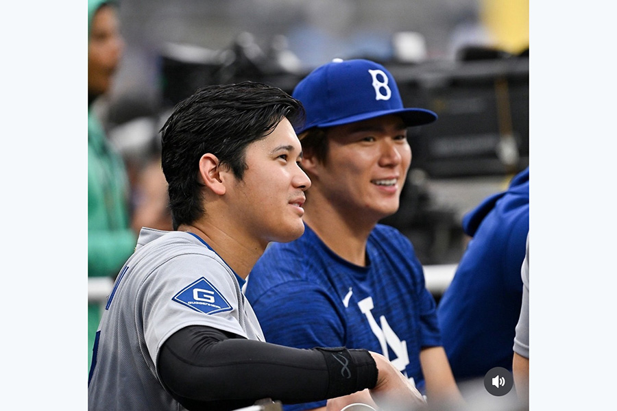 「Smiling」と称された今回の1枚は、大谷が柔らかい笑顔を見せている。その奥にいつ山本も白い歯を見せており、和やかな空気が伝わってくるようだ。「とてもいい関係の写真ですね」「仲良し」「I love this picture」などと日米のファンにとってもお気に入りとなっている。
